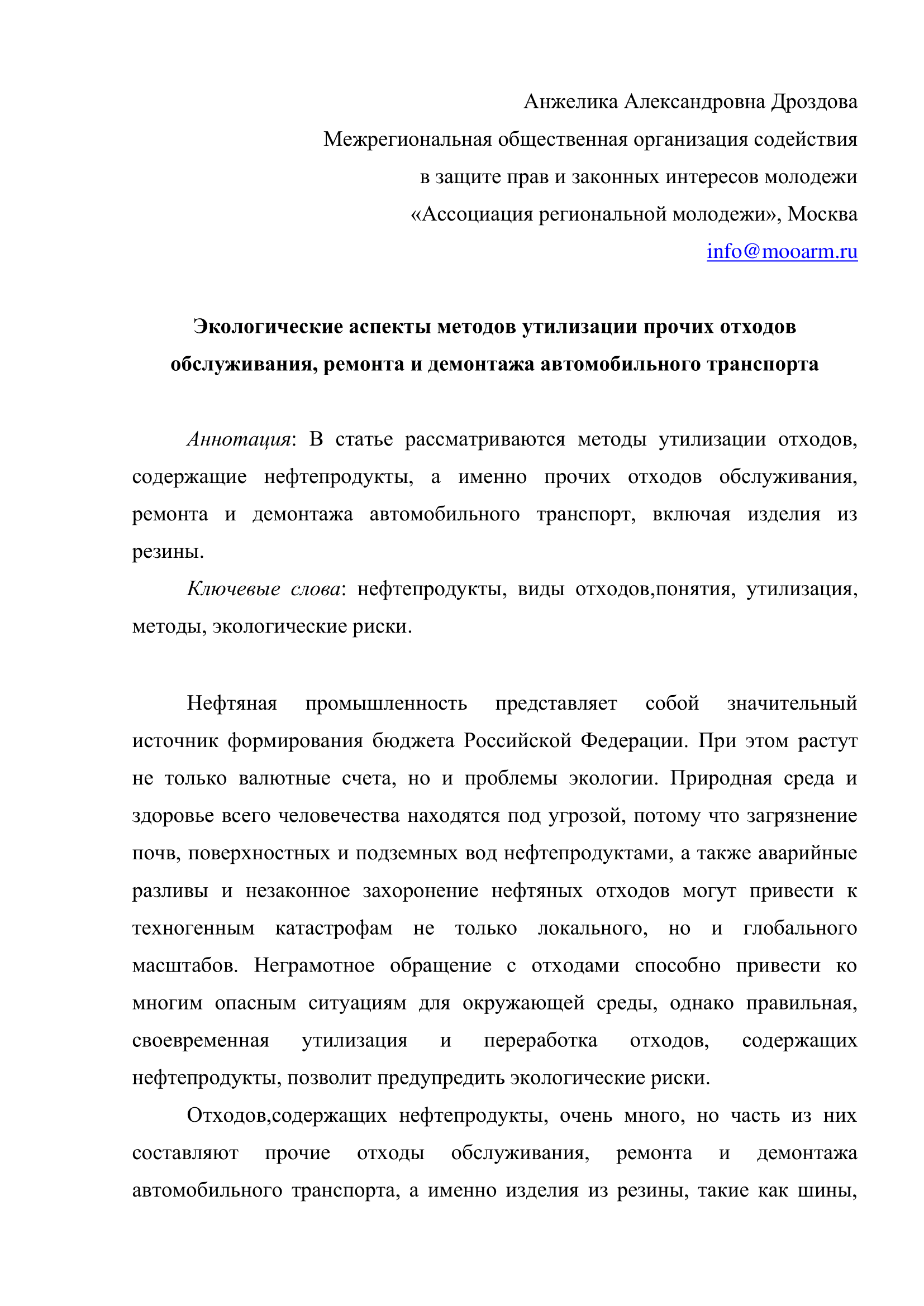 Экологические аспекты методов утилизации прочих отходов обслуживания, ремонта и демонтажа автомобильного транспорта